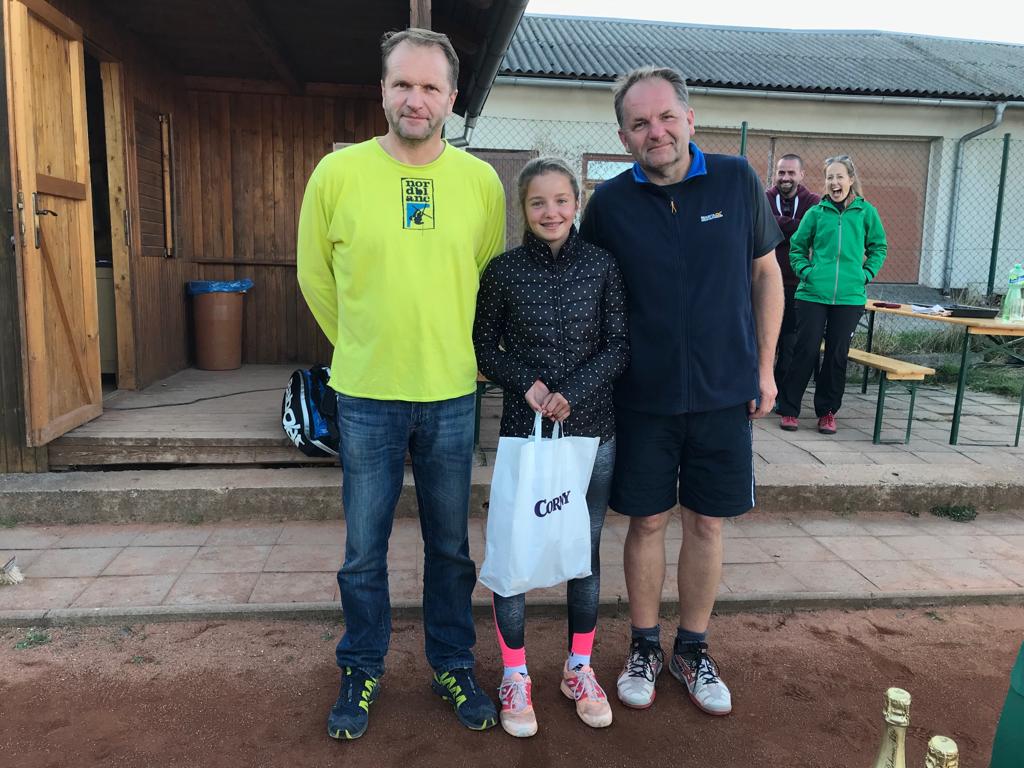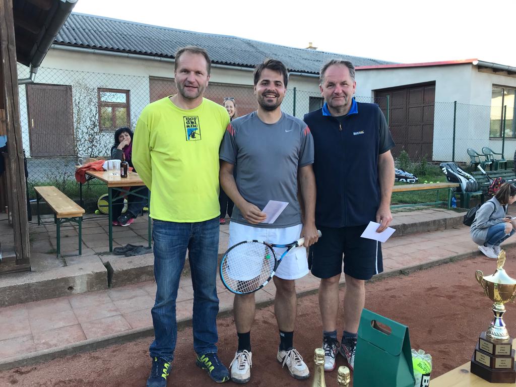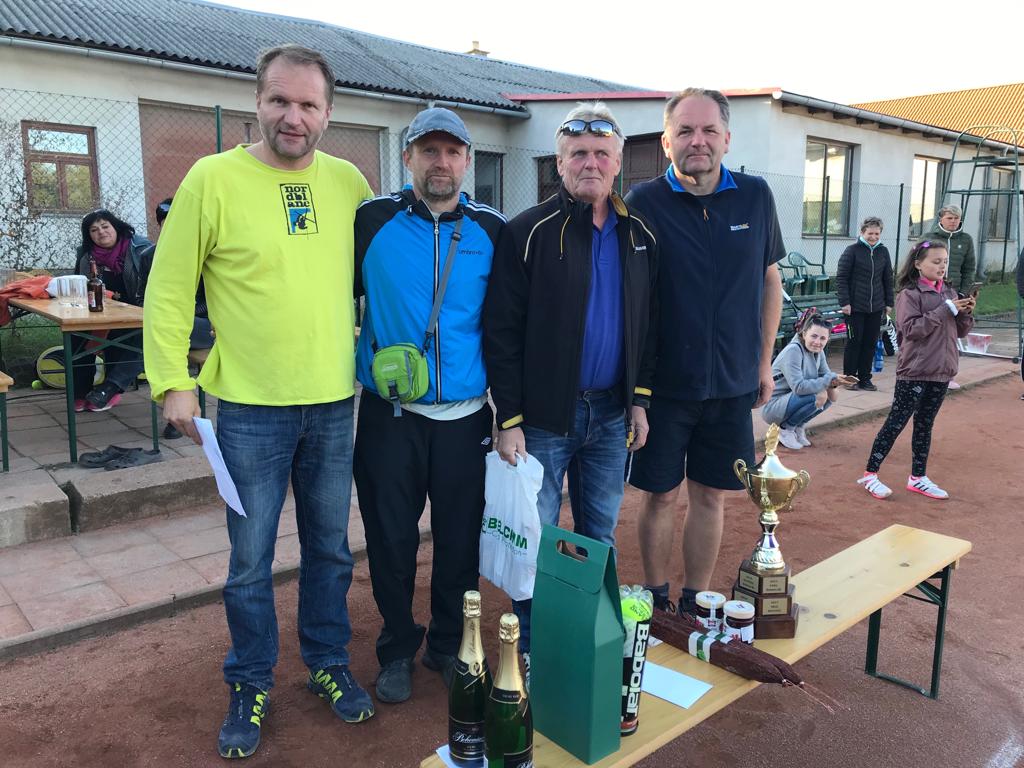 Tradiční tenisový turnaj čtyřher se tentokrát konal v sobotu 16. září 2017 za účasti 10 přihlášených dvojic. V deštivém počasí se z vítězství radovali mladí třeštští tenisté Zbyněk Hejl a Honza Macháč, kteří ve finále zdolali otce a syna Martina a Štěpána Bakajovi. Děkujeme sponzorům turnaje a jmenovitě firmě EUROTECH za poskytnuté ceny do turnaje.